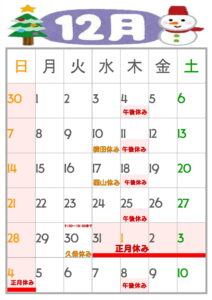 12月、年末年始のお休み
