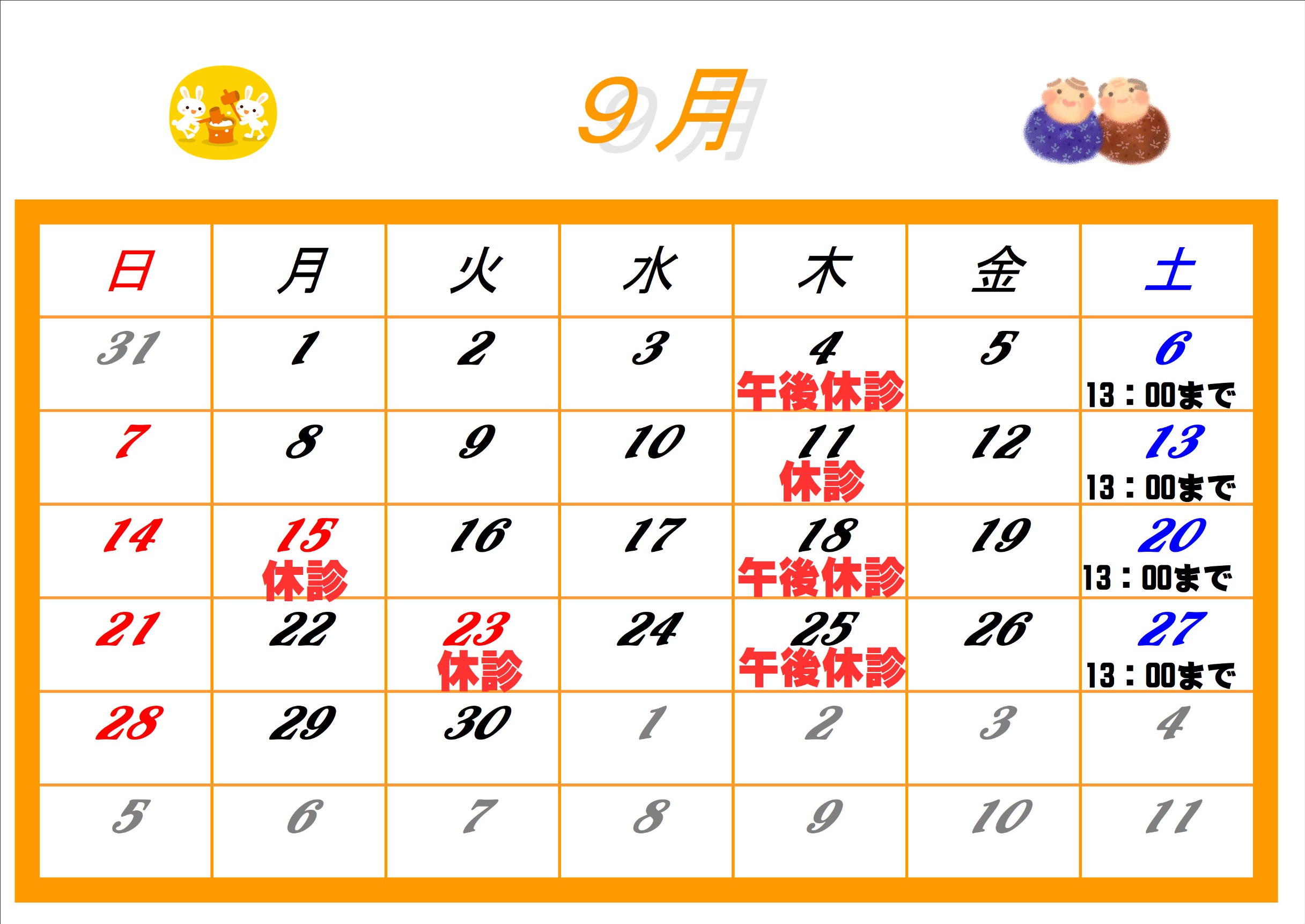 • ブログアイコン きたのだ院9月のお休みのお知らせ!
